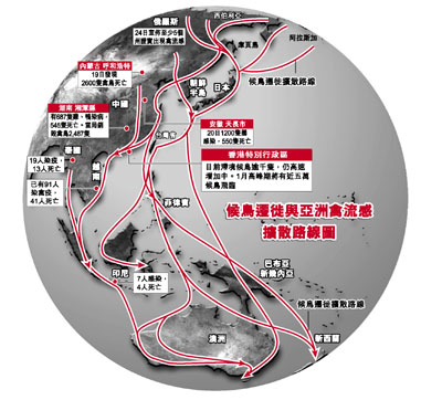 一旦候鳥途經疫區感染禽流感,恐會在南遷時把病毒傳播。不過,漁護署強調,自去年底在落馬洲檢獲的蒼鷺屍體身上驗出禽流感病毒外,至今未發現帶有禽流感的雀鳥,當局會加強抽驗米埔雀糞樣本數目,由以往的每月300個,增至500個。