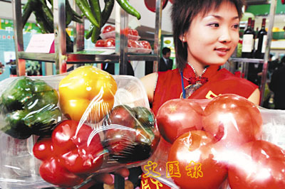 10月25日,工作人員在展示無菌綠色高能蔬菜。當日,寧夏「農產品加工西部行動.名特優產品博覽會」在銀川開幕,來自全國100多家農產品加工重點龍頭企業參展,展品涵蓋蔬菜、瓜果、食品、農機等近千種名、特、優產品。新華社