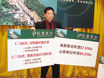 長江實業高級營業經理袁添鴻稱,柏濤東岸租金逾7萬。 本報記者張以正 攝