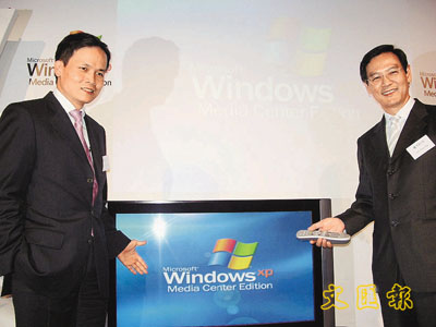 恆基謝偉銓(右)表示,為翔龍灣引入Windows XP Media Center Edition 2005(MCE)平台系統。 本報記者陳嘉文 攝