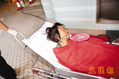 因不滿丈夫無暇陪伴,憤而燒炭自殺的婦人獲救送院。 本報記者蔣焯文 攝