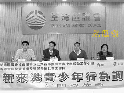 【本報訊】(記者 施立偉)據一項調查發現,荃灣區新來港青少年在融入社會時遇到不少困難,但又不懂得如何求助,因而容易誤入歧途,包括「參與黑社會活動」、「逃學或曠工」、「離家出走」及「濫用藥物」等行為。荃灣區議會及負責調查機構建議,政府及有關部門應加強外展社工服務,提供更多資源及服務機會予新來港青少年,重建其自信心及學習動機,引導他們走向正途。