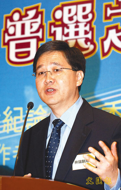 新世紀論壇及香港法律論壇昨日舉辦「香港邁向普選之路論壇」,政制專責小組梁愛詩等均有出席。林瑞麟在論壇上重申,特區政府正積極處理政制發展問題,並已勾劃出3個重要議題,交由管治及政治發展小組進行,務求進一步研究在如何符合《基本法》的原則和規定下,逐步走向實行普選的道路。