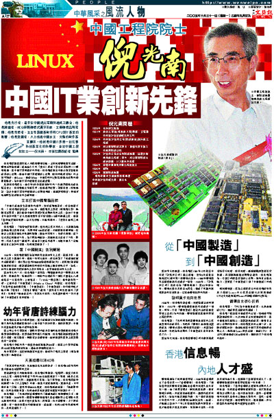 ¡@¥L¬O¥ý¦æªÌ¡A³Ì¦¦b¤¤°ê´£¥X¹q¸£»P³q°T¤§¿Ä¦X¡F¥L¬O¶}³ÐªÌ¡A¦¨¥\¬ã»sÁp·Q¦¡º~¦r¨t²Î¡B¥D¾ÉÁp·Q«~µP¹q¸£¡F¥L¬O«ä·QªÌ¡AWW«ä¯Á°ê²£³n¥ó©MCPU¹ïIT²£·~ªº¼vÅT¡F¥L¬O·R°êªÌ¡A¤j¤O±À¶i¤¤°ê¦Û¥D¡B§¹¾ãªº³n¥ó²£·~Åé¨t¡C¥L´N¬O¤¤°êIT¬É²Ä¤@§å±q¨Æ¬ì§Þ²£·~¤Æªº¬ì¾Ç®a¡Bº§å¤¤°ê¤uµ{°|°|¤h¡X¡XÙ¥ú«n¡C