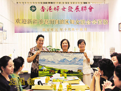 【本報訊】香港婦女發展聯會與新疆維吾爾自治區婦聯素有交流,該會曾於去年組團到新疆進行訪問及考察,並到新疆婦聯拜訪,互相交流工作情況及心得,獲得她們的熱情款待。自治區婦聯訪問團日前來港拜會香港婦聯。