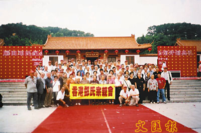 東莞雁田鄧氏紀念館最近舉行開館典禮,海內外鄧氏宗親雲集,圖為應邀出席的香港鄧氏宗親會代表團在館前留影。雁田鄧氏紀念館內設有包括「世界偉人鄧小平」、「民族英雄鄧世昌」等8個展室。