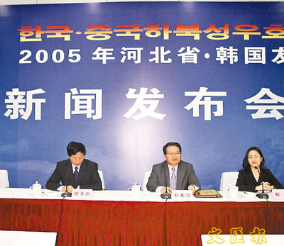 韓國在河北投資不斷擴大,截止2005年9月,累計投資約5億美元,韓國與河北交易額也在快速增長,從2001年到2004年分別是4.8億美元、6億美元、7.2億美元、13億美元,今年到8月底已超過去年一年的交易額。迄今為止,韓國駐華使館分別於2003年與黑龍江省及吉林省、2004年與湖北省及湖南省、2005年上半年與四川省及重慶市舉辦了「友好周」活動。