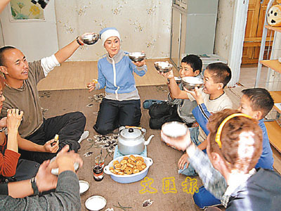 ■當地宣明會中心,孩子無家人照顧,平日在中心活動及學習,他們正在一起喝羊奶及食餅乾。