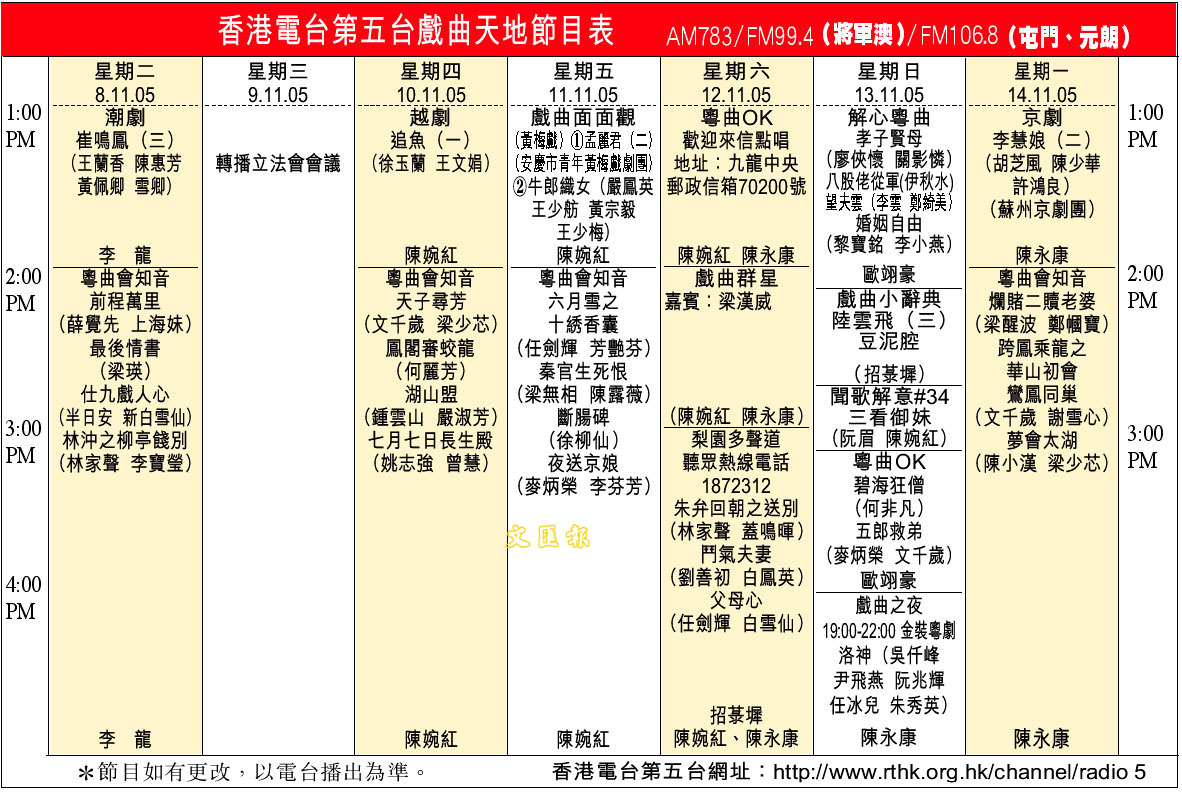 [2005-11-08] 香港電台第五台戲曲天地節目表