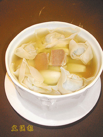 此菜式是上海菜的代表,因此師傅於選料上特別用心,火朣是豬的肘子位,肥瘦適中,而津膽是屬於津白中較嫩身及甜美的部分,再加入雞,將所有材料的鮮味散發出來。另外,師傅亦特別選用較大塊的雲吞皮,讓其吸收湯的味道。$180