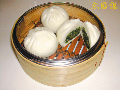 香菇素菜包選用小棠菜及冬菇作餡料,再配合師傅與眾不同的開粉方法,令包皮軟滑。由於師傅於製作過程中將水溫控制恰到好處,因此素菜包於蒸熟後仍能保持其鮮味及色澤。$18/3件