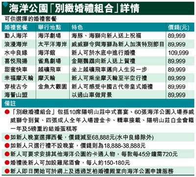 [2005-11-12] 海洋公園「別緻婚禮組合」詳情