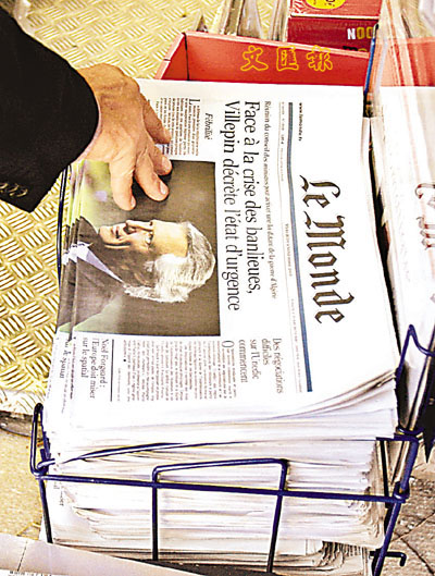 法國老牌晚報《世界報》自本周一開始推行10年來最大規模的版面改革,務求能從愈來愈大行其道的網上報章和免費報章手中搶回已流失的廣告客戶和讀者。正如其他同病相憐的歐洲報章一樣,《世界報》決定採用較大面積的相片、全面彩色化、選用較大字樣和縮短文章篇幅,務求遏止銷量下降。