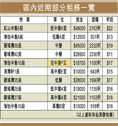 區內近期部分租務一覽 (圖)