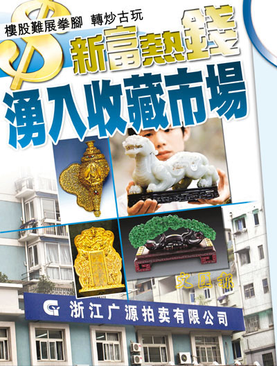 自去年以來,在北京及國外的大型拍賣會上,許多重量級的拍賣品都被浙江的買家高價收走。有媒體稱,投資過熱的樓市在政府政策組合拳的重擊下開始呈現降溫趨勢,很多炒樓人覺得房地產風險太大,古玩收藏才是最保險的投資。