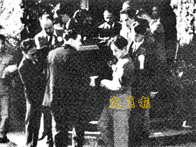 ■魯迅先生葬禮。巴金(左一)為扶柩者之一。
