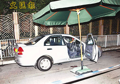 遇劫女警的座駕旁地上遺下一灘血漬。