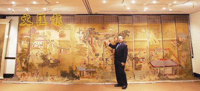 另一套「漢宮春曉圖」軸十二屏通景是清初呂煥成作品,設色絹本,畫後宮妃嬪生活百態,畫工非常精細,估價200萬至250萬元。加上另一件巨作為藍瑛與陳虞胤合繪「講幃桃李圖」,同樣是十二屏通景裱成六曲屏風一對,估價230萬元至300萬元。