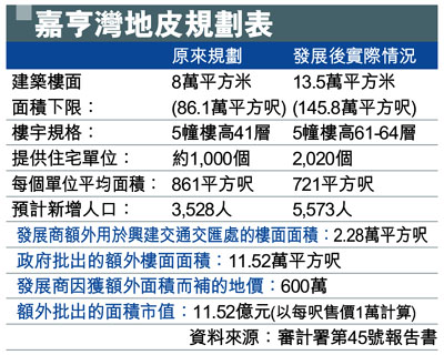 嘉亨灣地皮規劃表 (圖)