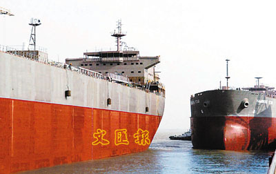內地要擴大LNG船隊,同時又擔心供應不足時運力過剩。圖為江蘇為意大利製造的兩艘萬噸油輪日前下水。 資料圖片