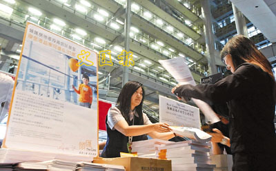房委會稱,三手或以下的有效申請,可獲批全數申請的基金單位數目。圖為市民領取領匯股票表格的情形。 資料圖片