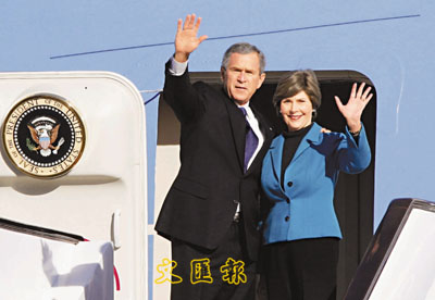 ■21日上午,美國總統布什結束對中國的訪問,乘專機離開北京轉往蒙古。 新華社
