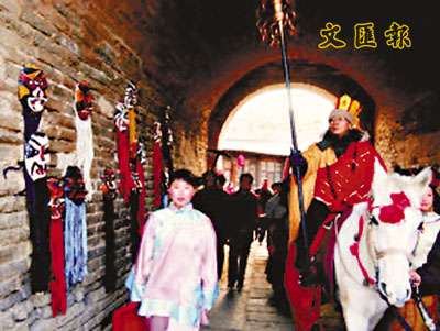 【本報駐寧夏記者王尚勇、實習記者鐵麗雲銀川電】日前,《情癲大聖》舉行的「重走大話西遊之路,再續情癲大聖之緣」的影片宣傳活動,「唐僧」—羅家英又一次身穿袈裟,騎著白龍馬出現在寧夏鎮北堡影視城,開始他的「故地重遊」,來寧「取經」之旅。當日上午,行哥抵達鎮北堡西部影視城,來自全國的幾十位記者和影迷們將他圍了個水洩不通。行哥下車後,手持法杖,身披袈裟、頭戴僧帽,騎上頭戴紅花、身披紅坐墊的「白龍馬」,再現了唐僧「取經」形象。一路走來一路看,到達「百花堂」前,鎮北堡西部影視城董事長張賢亮已經在門前等候。一句「文官下轎、武官下馬」讓賓主二人說笑起來。