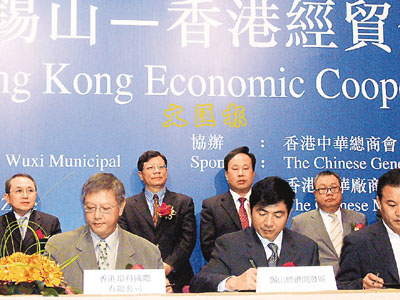 江蘇無錫錫山區已經連續三次在香港舉辦經貿活動,自2003年內地與香港建立CEPA合作框架以來,先後有87家港商投資企業落戶錫山,累計在錫山已有307家港資企業,總投資額超過20億美元,港商總投資160億港元,約佔錫山外資的1/3。去年兩地貿易額達到5億美元。