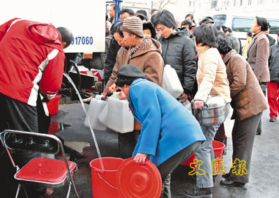 哈爾濱市還千方百計地補充水源,哈爾濱市現有918眼深井提供32噸地下水的情況下,增打100眼深水井,增加8噸地下水。同時,哈市周邊市縣支援的水也大量運到,相當程度地緩解了哈爾濱市的供水緊張問題。