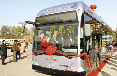 23日,戴姆勒.克萊斯勒(按:港譯佳士拿)公司為「中國燃料電池公共汽車商業化示範」項目生產的三輛燃料電池公共汽車正式交付,並即將在北京投入公交運行。中新社