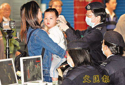 政府為減低禽流感傳播機會和提高警覺性,在邊境口岸恢復為入境人士量度體溫。 資料圖片