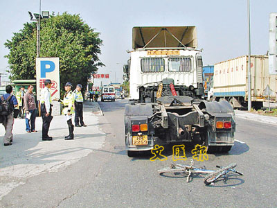 [2005-11-26] 地盤工騎單車 慘遭櫃車輾斃 放大圖片