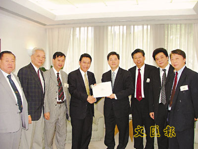 香港新界工商業總會首腦向林瑞麟遞交支持政改方案的意見書。