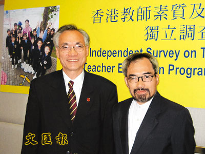 ■鄭燕祥(左)與城大優質評估研究中心主任梁君國發表調查結果。本報記者曾媚 攝