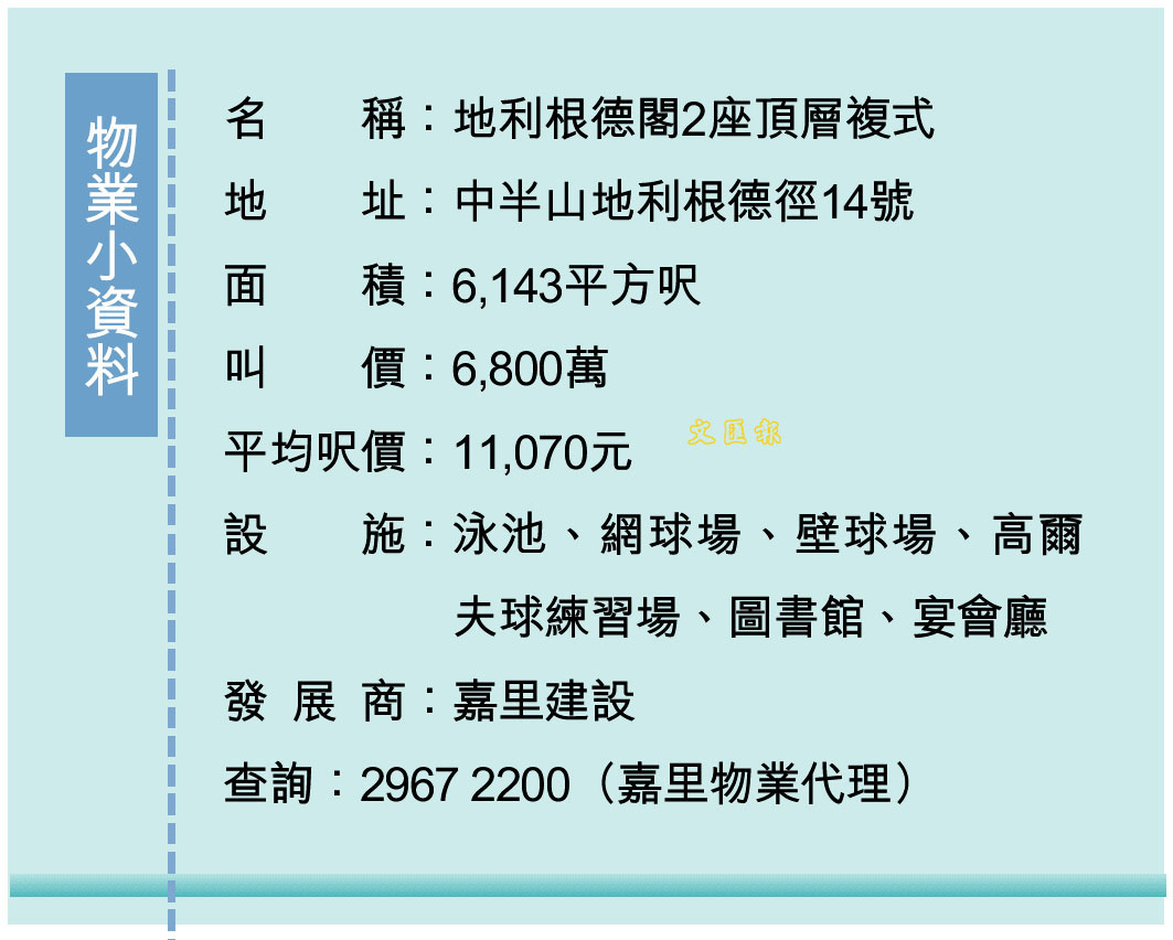 設 施:泳池、網球場、壁球場、高爾夫球練習場、圖書館、宴會廳