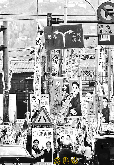 ■三合一選舉開始,除了台北高雄兩市,全台灣只能用旗海飄揚形容,候選人花大筆金錢製作旗幟打響了名號,卻破壞了市容景觀。 中央社