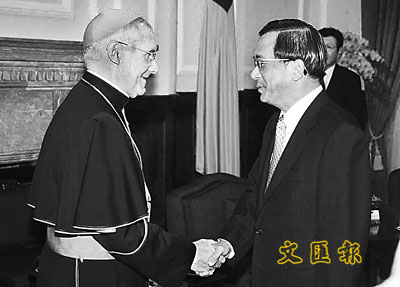 台灣「總統」陳水扁昨日頒授「特種大綬景星勳章」給教廷樞機主教陶然,同時又放出政府將尋求修法,將聖誕節列為假期的信息,討好教廷。