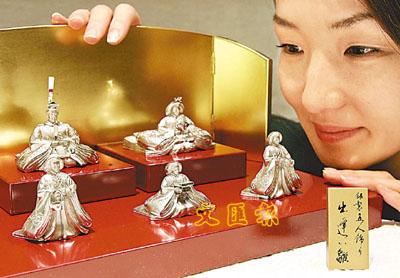 每年三月的女兒節向來極受日本人重視。有關珠寶店將於12月1日發售女兒節公仔銀飾,說甚麼為慶祝清子公主大婚,是商人的幌子吧!(法新社)