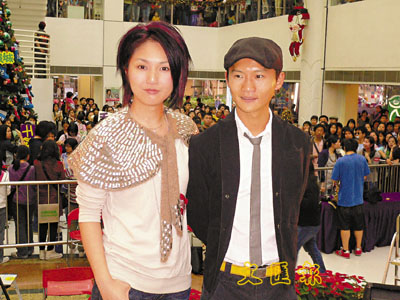 楊千嬅和林一峰舉行簽名會,吸引了大批途人圍觀。
