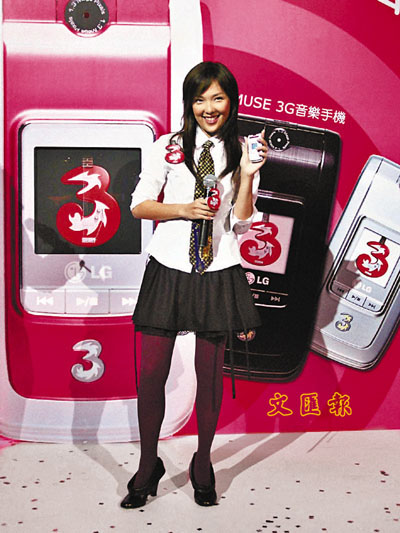 3香港推出全港最薄既3G手機,淨重只有99克,更找來黎明師妹衛蘭(見圖)夥拍台灣實力歌手光良拍攝電視廣告。