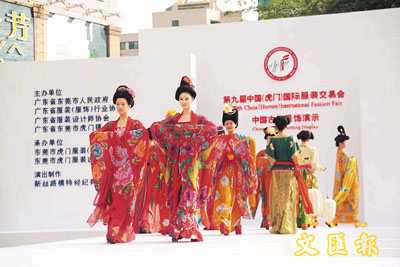 模特兒在虎門服裝交易會上,展示古典服裝的魅力。