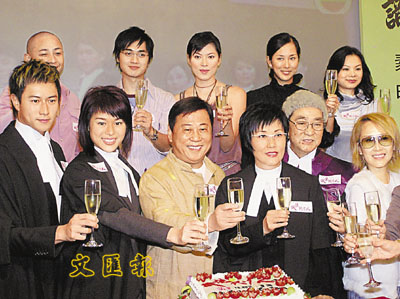 【本報訊】(記者 許紹基)無線新劇《識法代言人》的一班演員昨日出席了該劇的記者招待會,各主要演員都穿上律師袍亮相,並且即場切蛋糕及放紙炮,慶祝該劇的兩位演員汪明荃(阿姐)及夏雨於早前無線台慶頒獎禮上得獎。