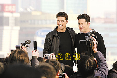 另外,《職業特工隊3》到上海、浙江西塘古鎮拍外景,男主角湯告魯斯與未婚妻在上海被大量的記者追訪,威風八面了一段日子,昨午靚佬湯及導演J.J終於在上海的外灘舉行了正式的記者會,讓大家一睹大明星的風采。