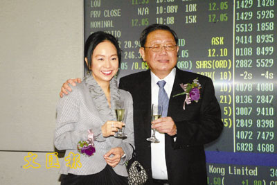百盛商業集團上市,前著名歌星陳秋霞專程到來捧丈夫即百盛主席鍾廷森的場。 本報記者張偉民 攝