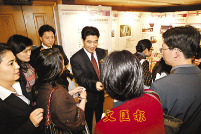 蘇州工業園區香港服務業推介會在港舉行,王金華受到傳媒包圍。 本報記者張偉民 攝