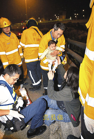 消防員將林子交給張婦照顧,林子停止哭泣,救護員恐怕孕婦胎兒受影響,遂建議她上救護車接受檢驗,幸證實無恙,她事後代為抱著林子,與其他傷者一併送院,其中林被驗出曾經喝酒,遭警員警誡。