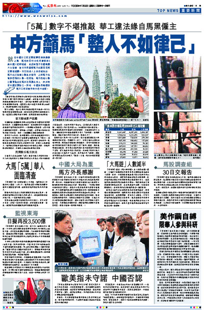 就在中國女公民受辱案鬧得沸沸揚揚之際,馬來西亞昨日突然宣稱有5萬中國人逾期逗留,並授權警方全國範圍大力清查,這令外界質疑馬方此舉是否與受辱案相關。外交知情人士向本報指出,馬方此次清查行動並非首例,之前馬方也曾有過類似行動。他認為,馬方應將行動打擊重點放在馬非法黑僱主身上,而非無辜中國受騙勞工。同時,中國各界普遍對馬方公佈的數字表示極大懷疑。