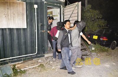 涉嫌偷挖泥車的3名男子,被蒙頭帶走調查。
