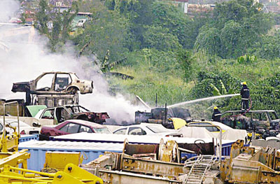 消防員接報到場,由於現場遠離水源,需在500米外拉喉,才能開4條喉灌救,至下午5時32分將火撲熄。現場約10米乘10米面積,大批廢棄汽車和輪胎被燒毀。消防調查後認為起S因無可疑,但不排除有人遺下火種肇禍。