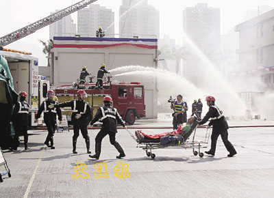 【本報訊】(記者 陳朗昇)將於下周三退休的消防處長林振敏,昨日最後一次以處長身份主持消防學校畢業典禮,他寄語畢業的消防學員,只要循著正確方向努力,說不定可以成為日後的消防處長。典禮尾聲時,消防處安排模擬爆炸意外演習,要在短時間內撲滅火警及作出救援,顯示消防及救護隊伍已為10天後舉行的世貿部長級會議作好準備。